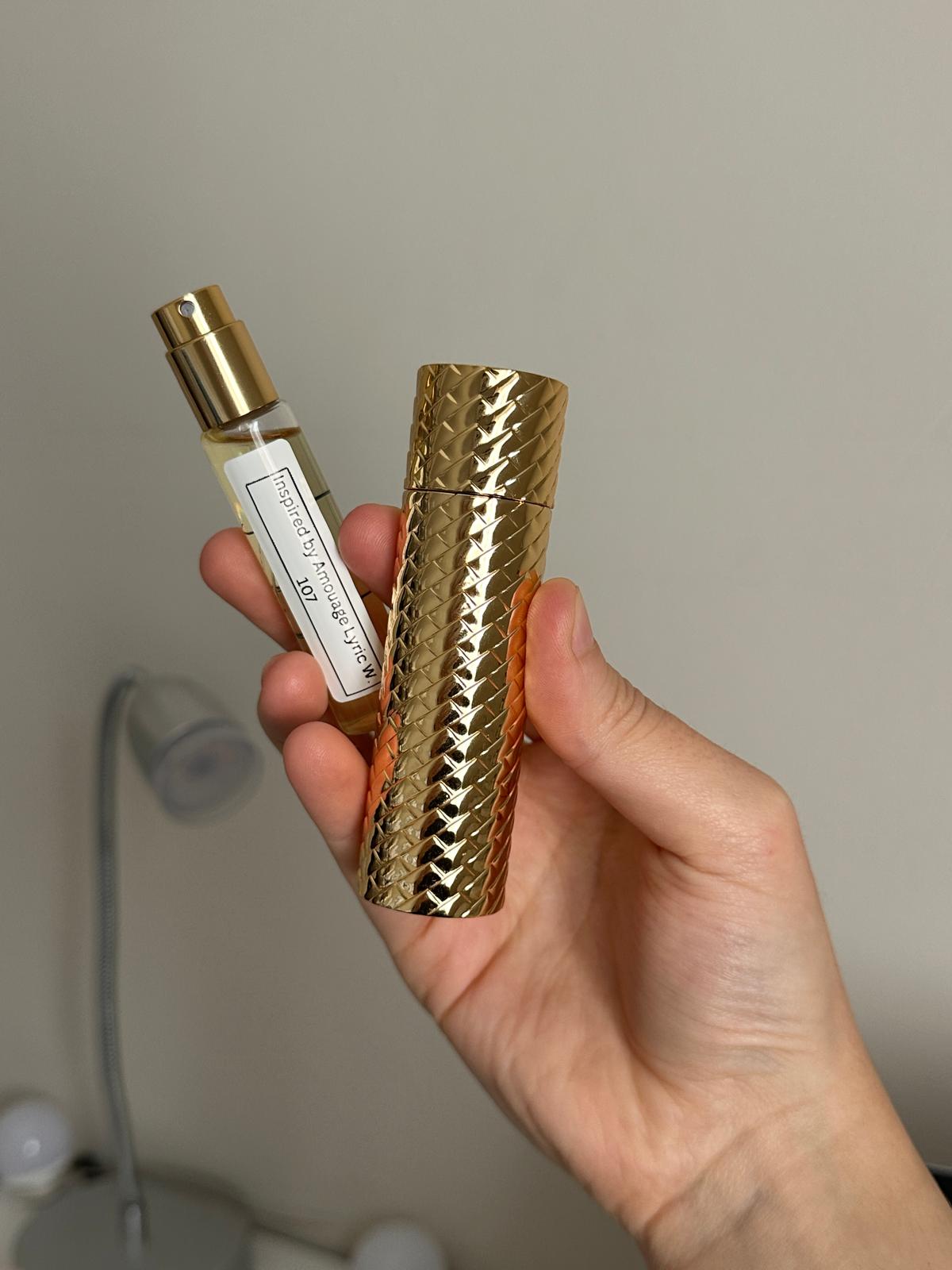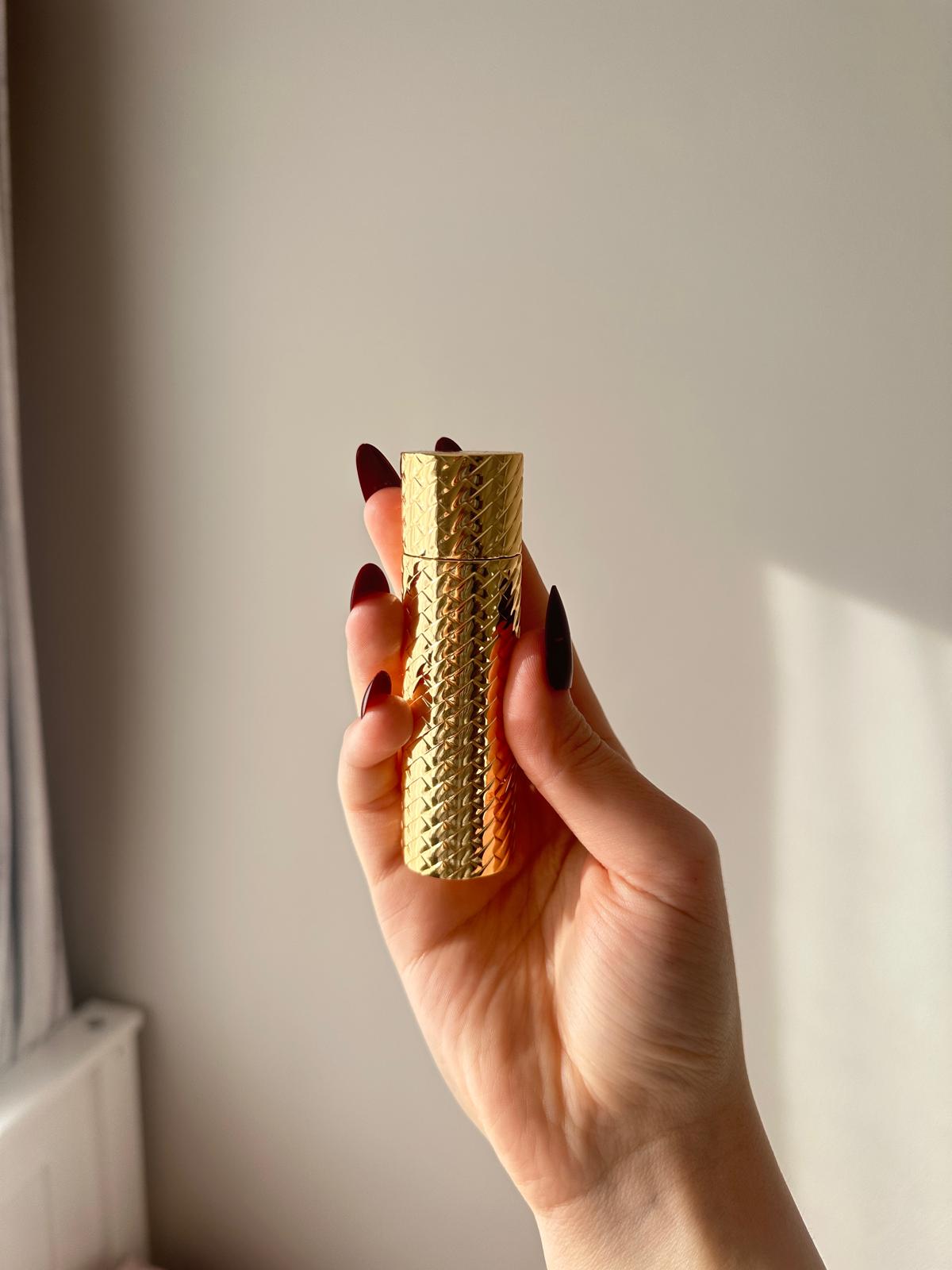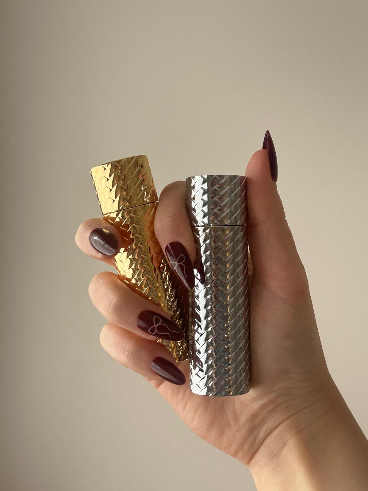 Compact and protective, crafted from metal to keep vials safe. Designed for travel (11 ml), it fits easily into handbags or carry-ons. Stylish and customizable with colors or monograms, available as standalone cases, decorative sleeves, or sets with interchangeable vials.